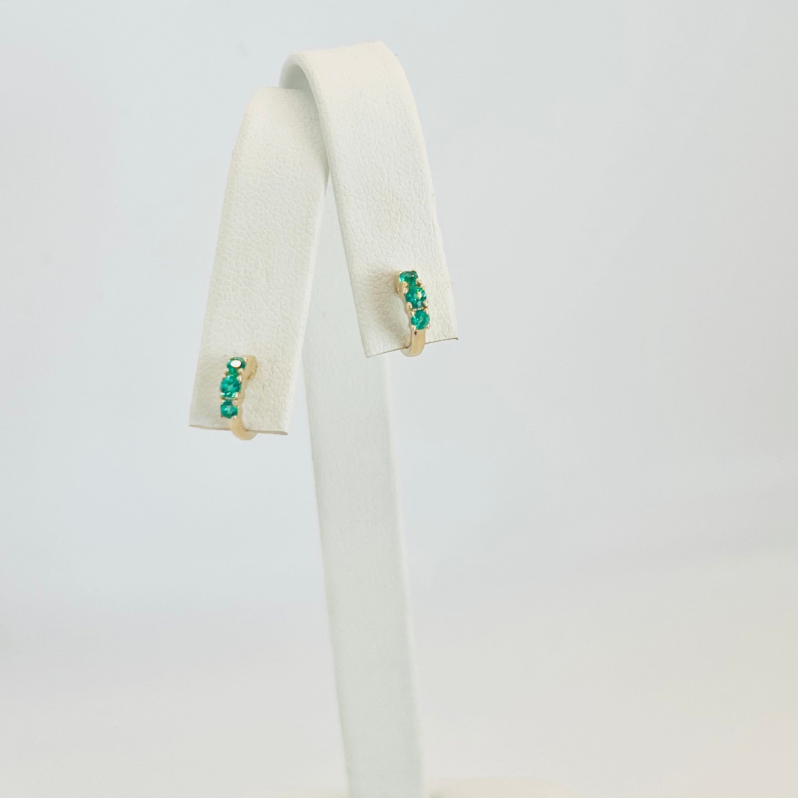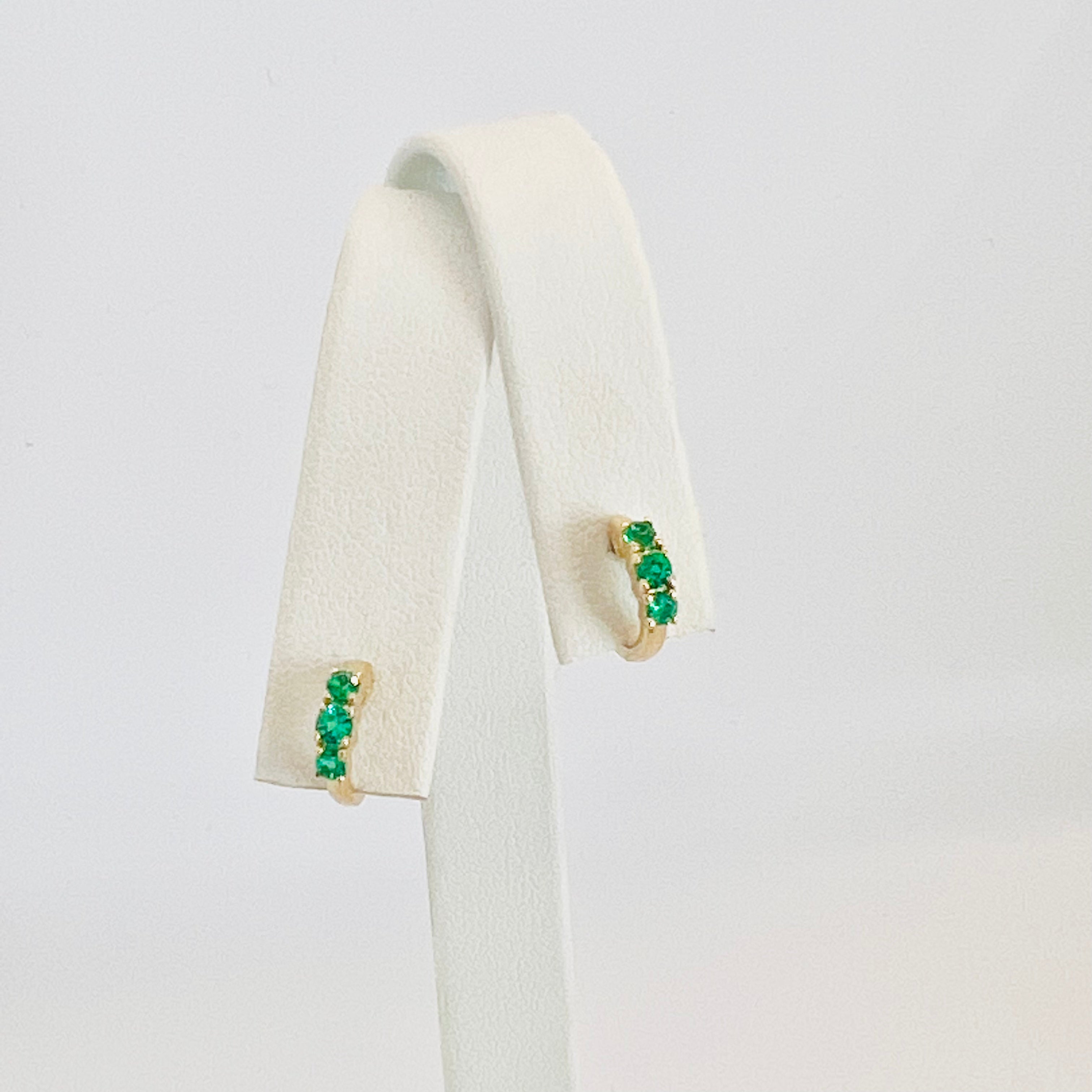 14k gold and emerald huggies