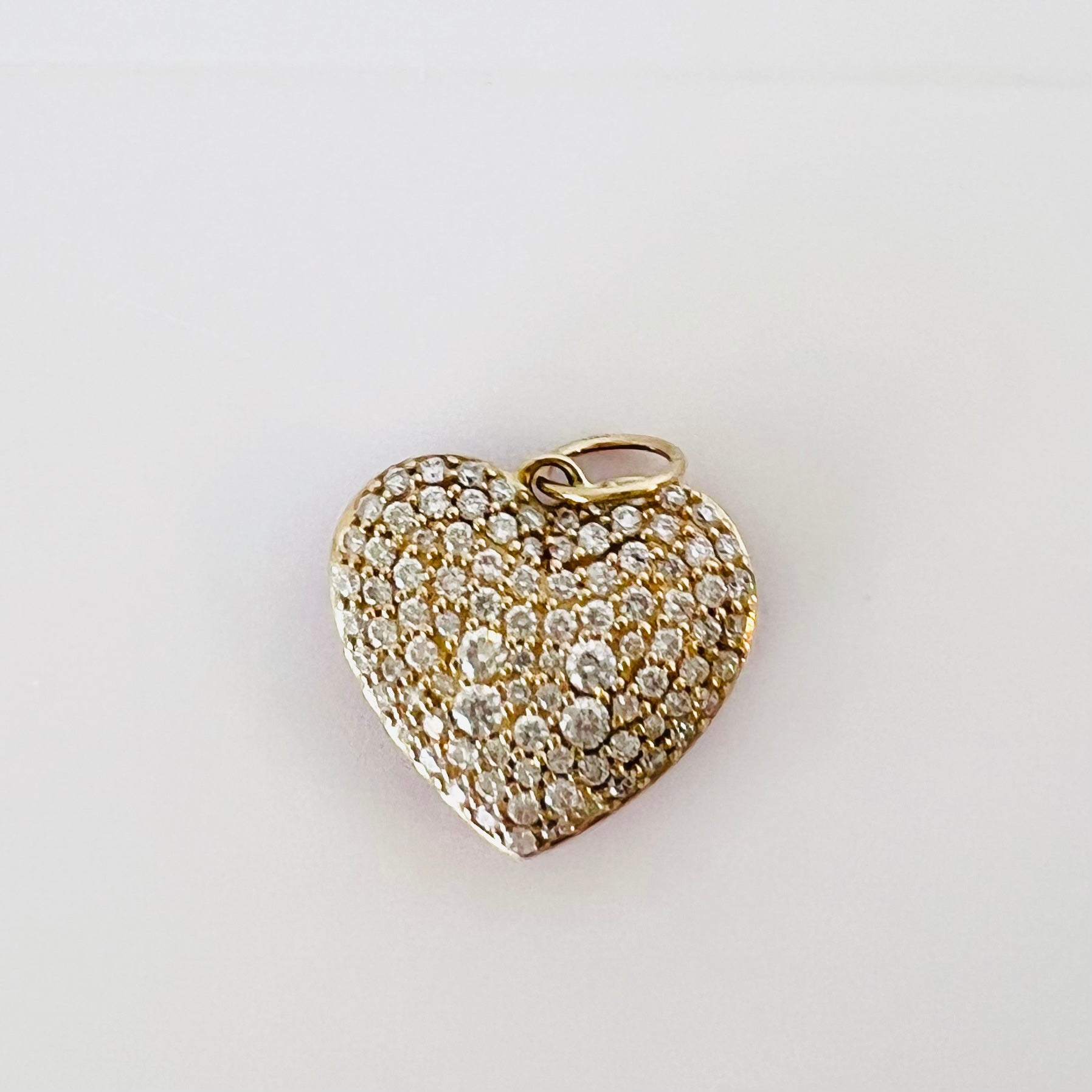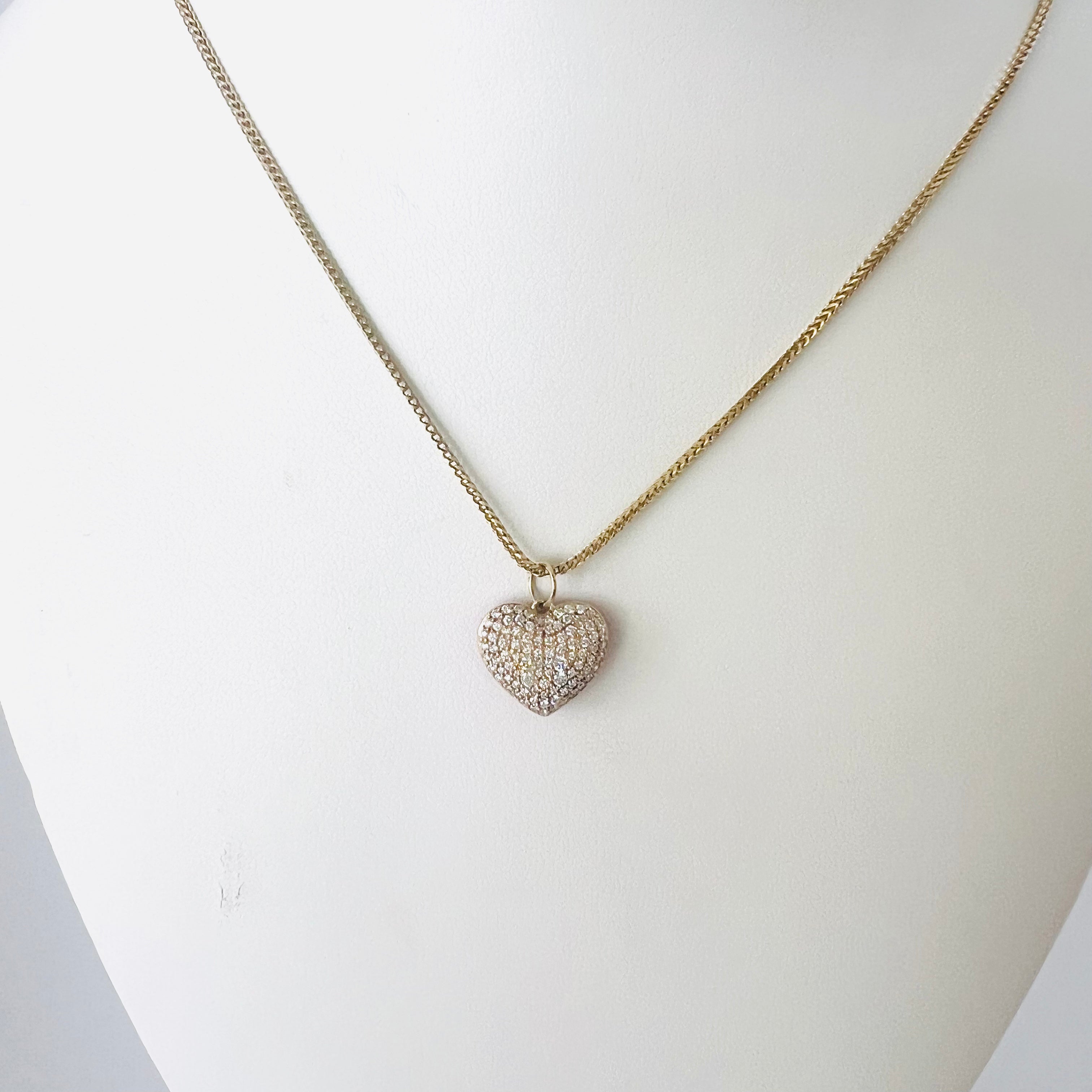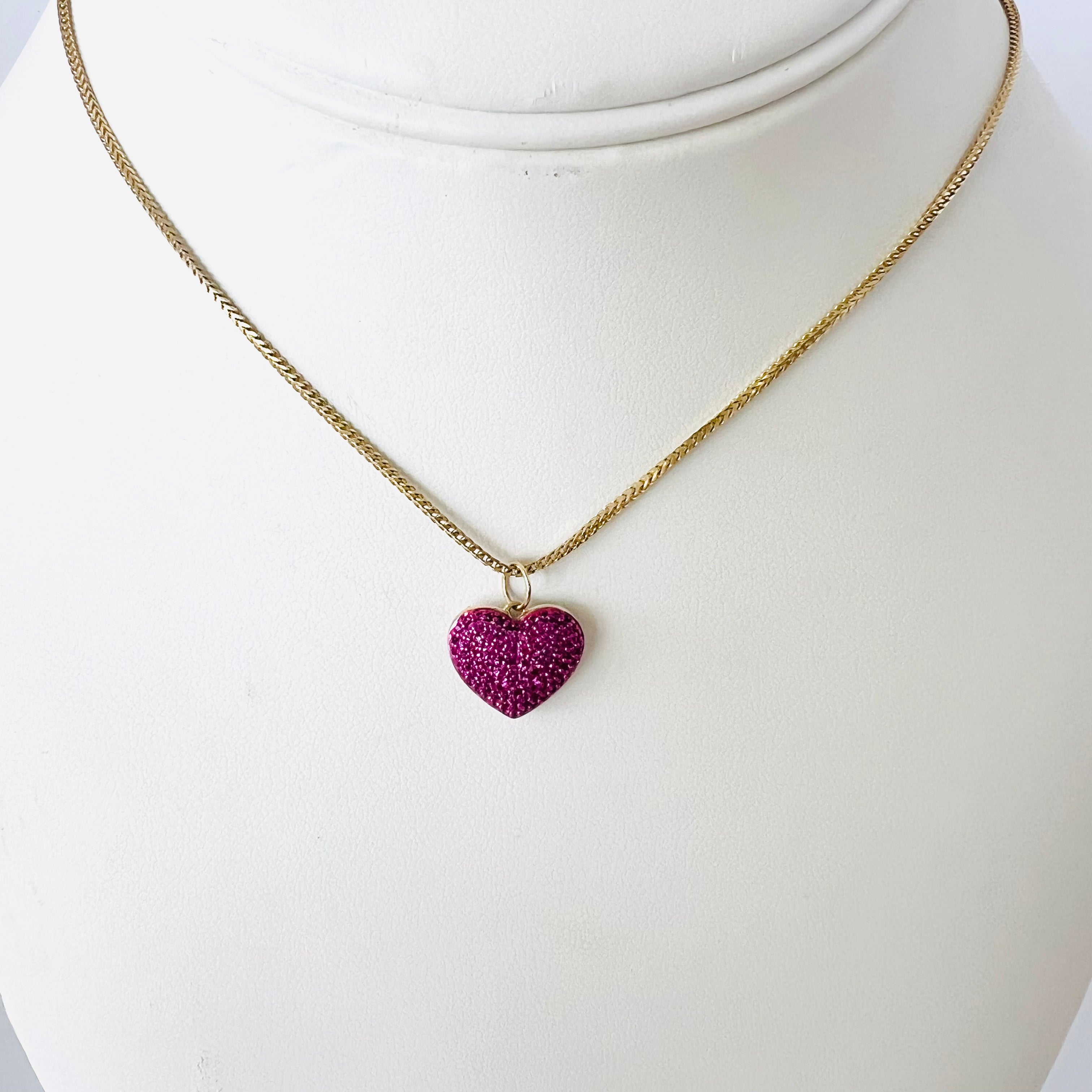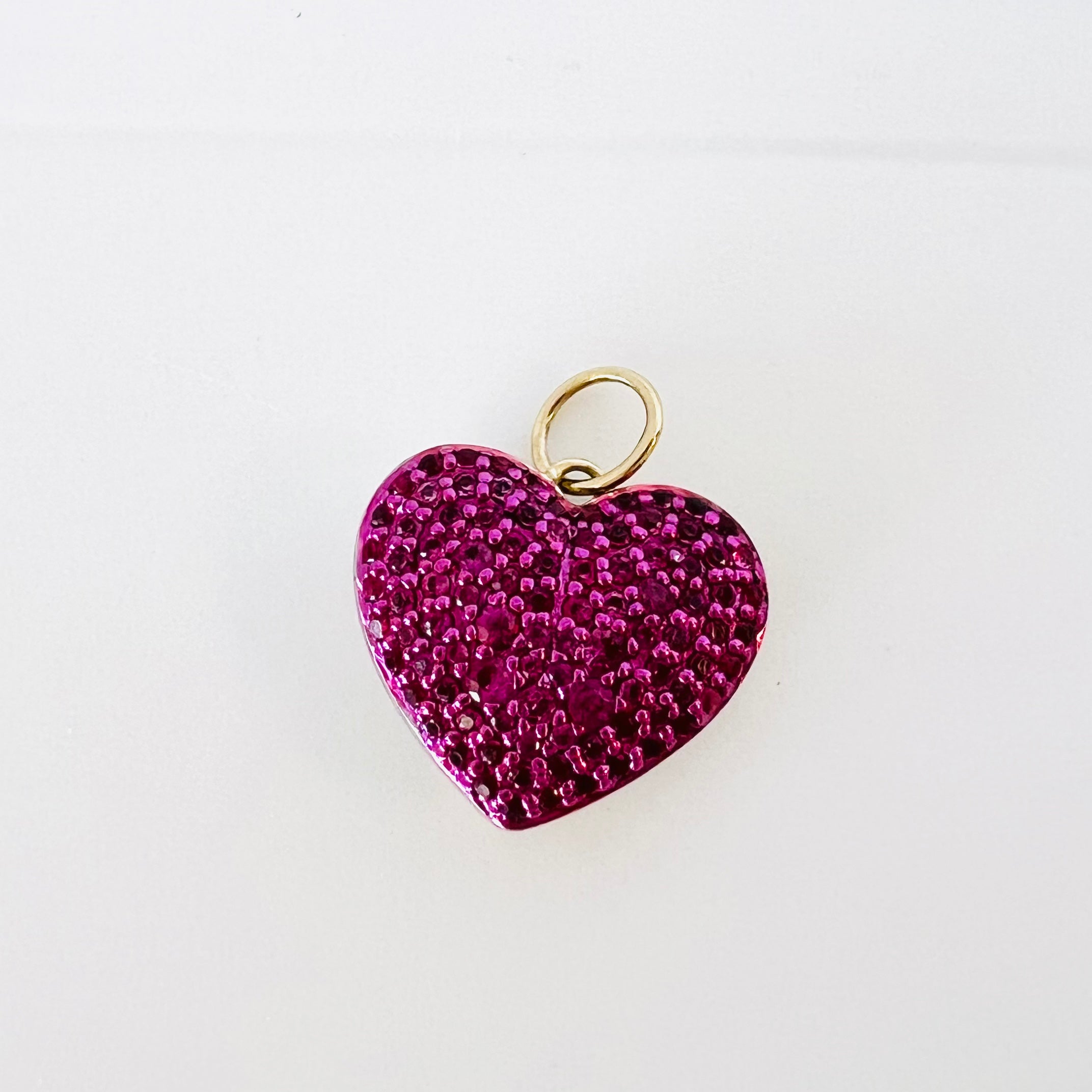- 14k gold pave diamond and pave pink sapphire reversible heart pendant/charm