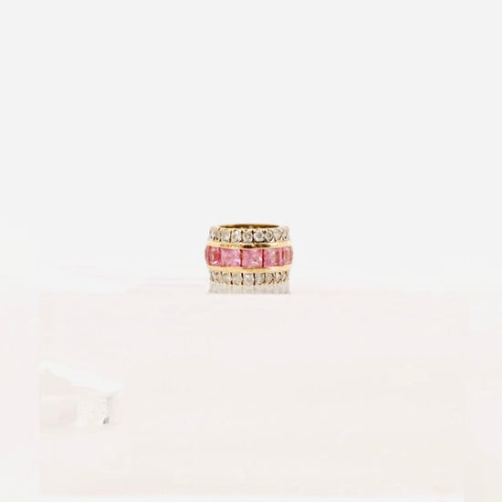 14k two row diamond and pink sapphire rondelle