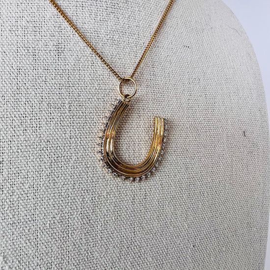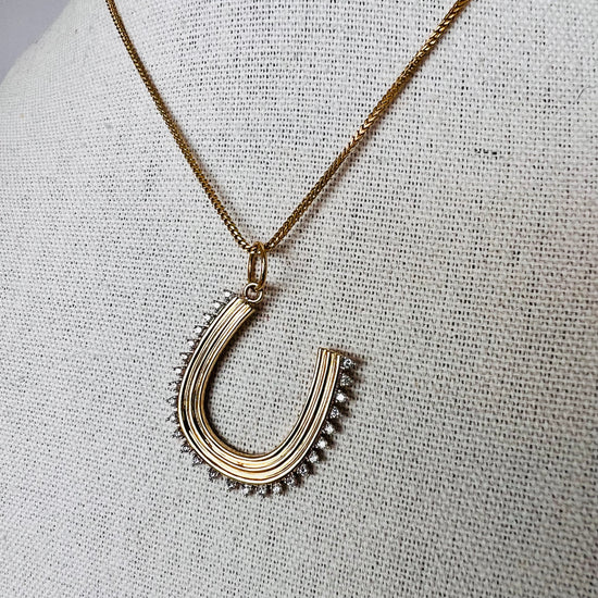 - 14k gold with ridge detail and diamond horseshoe pendant