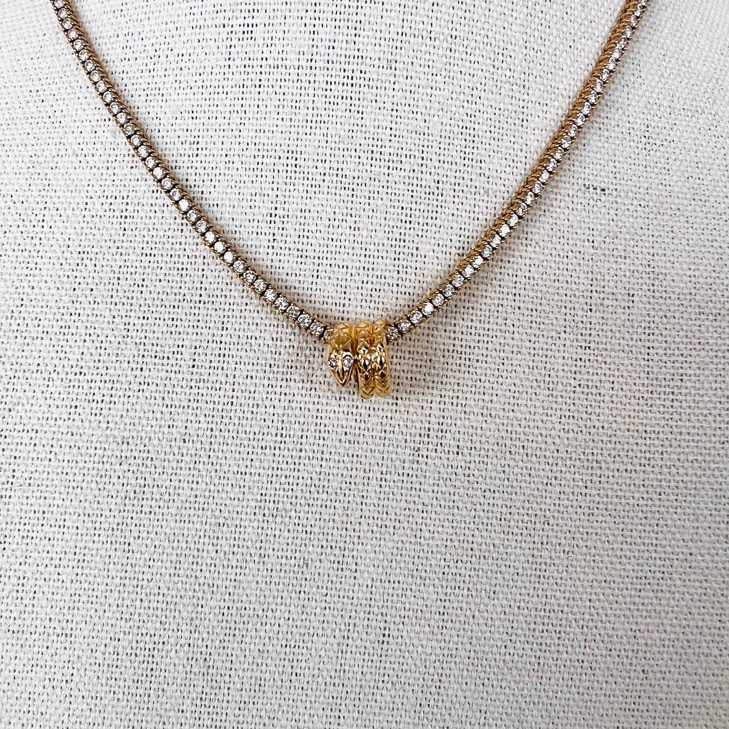 Featuring a sleek and adventurous polished 14k gold snake with diamond eyes, this charm radiates luxury! Designed to glide effortlessly along your favorite chain, it’s the perfect mix of elegance and edge. Whether to wear solo for a minimalist vibe or layered for a bolder look, this slider brings just the right amount of shine to your every day