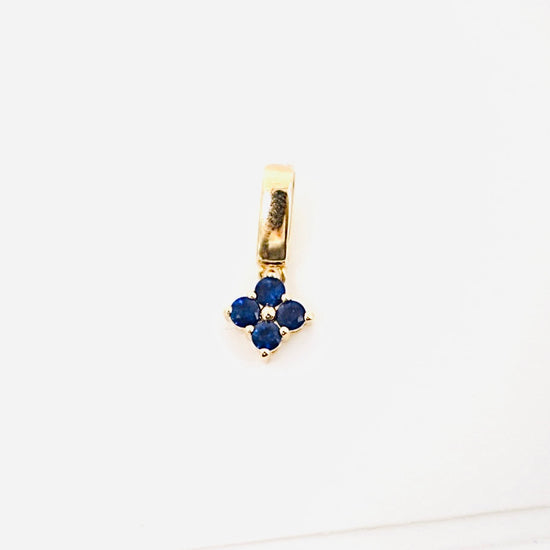 14k gold blue sapphire flower drop charm/pendant