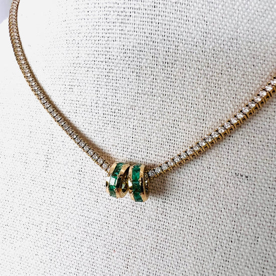 Featuring a sleek, polished 14k gold with emerald baguettes, this charm radiates luxury! Designed to glide effortlessly along your favorite chain, it’s the perfect mix of elegance and edge. Whether to wear solo for a minimalist vibe or layered for a bolder look, this slider brings just the right amount of shine to your every day
