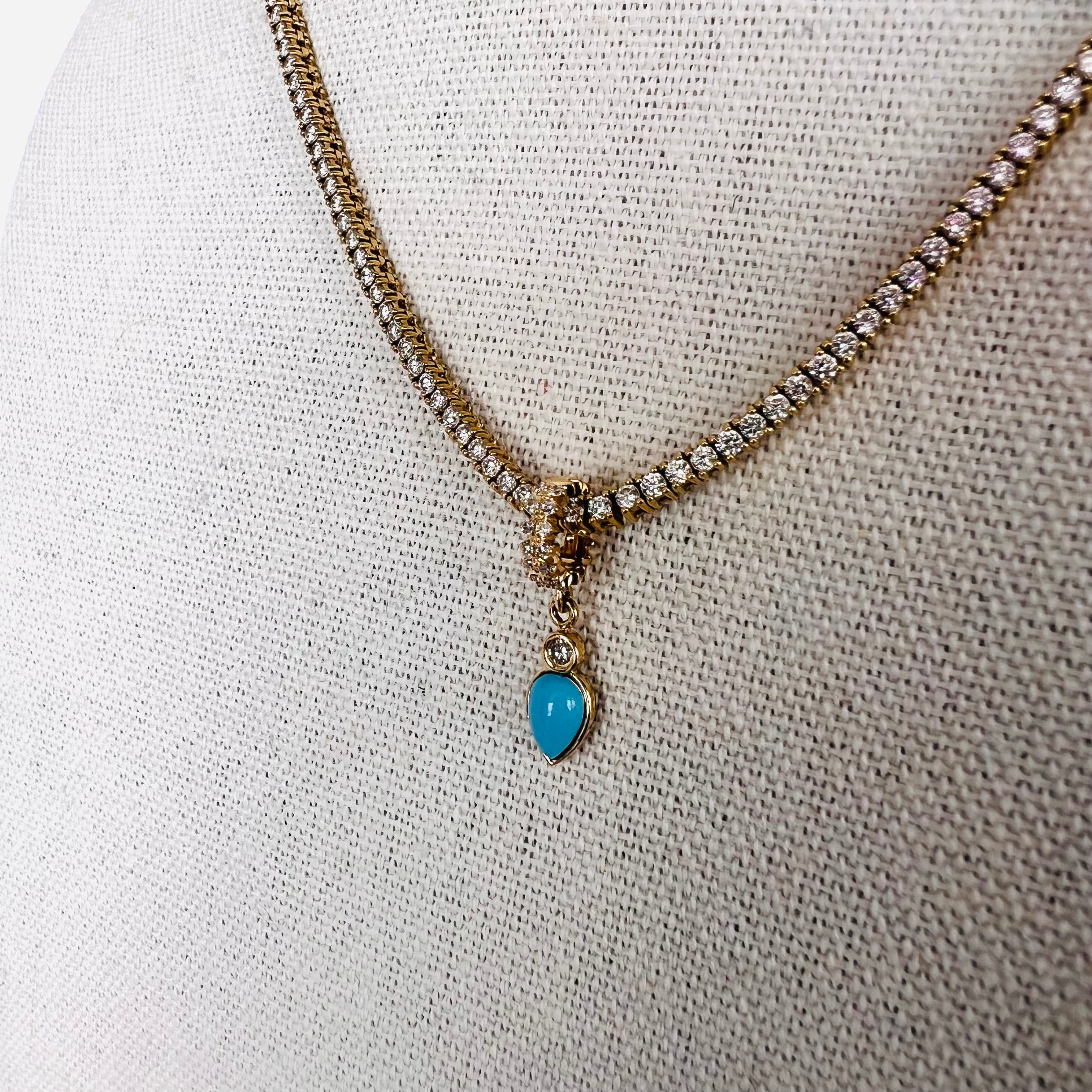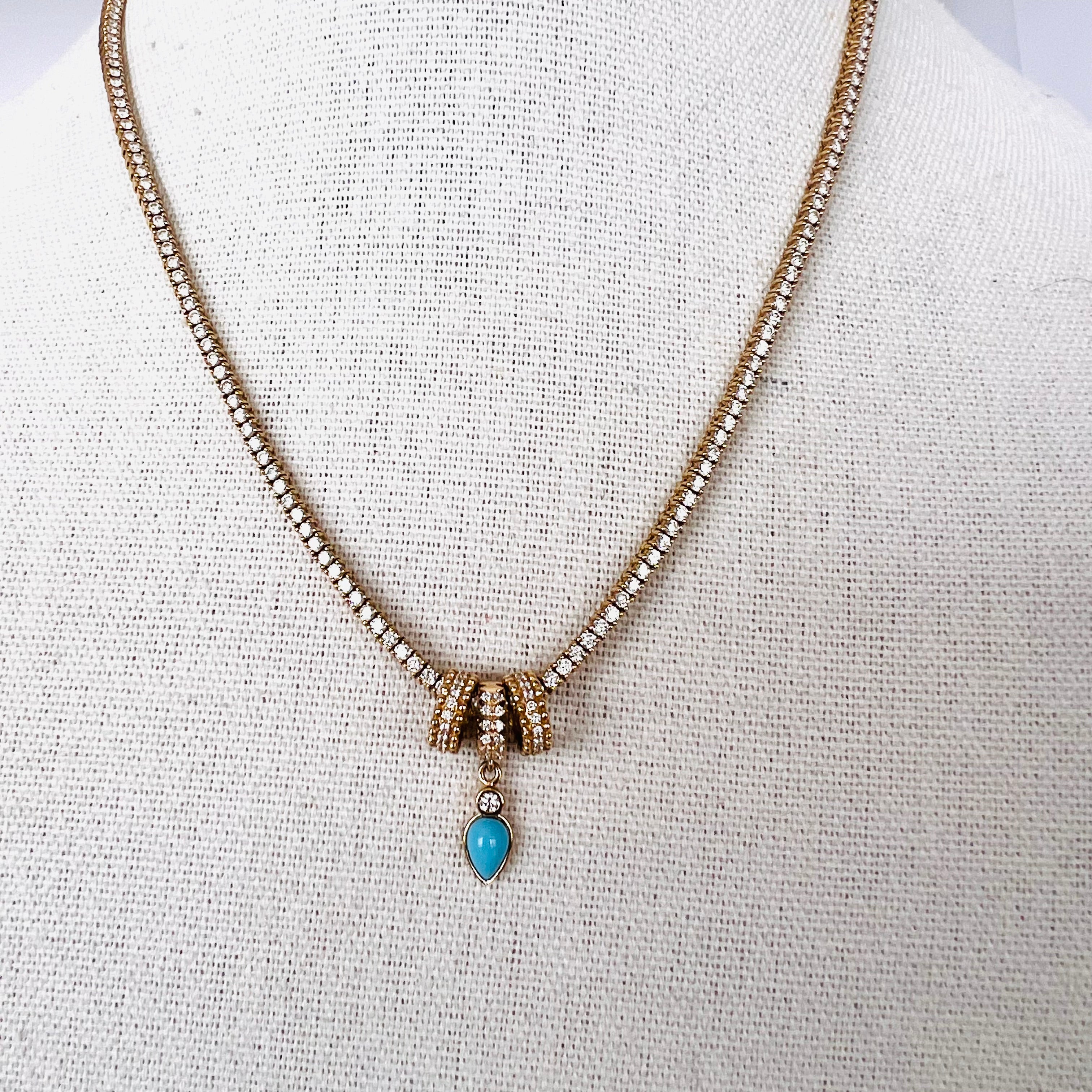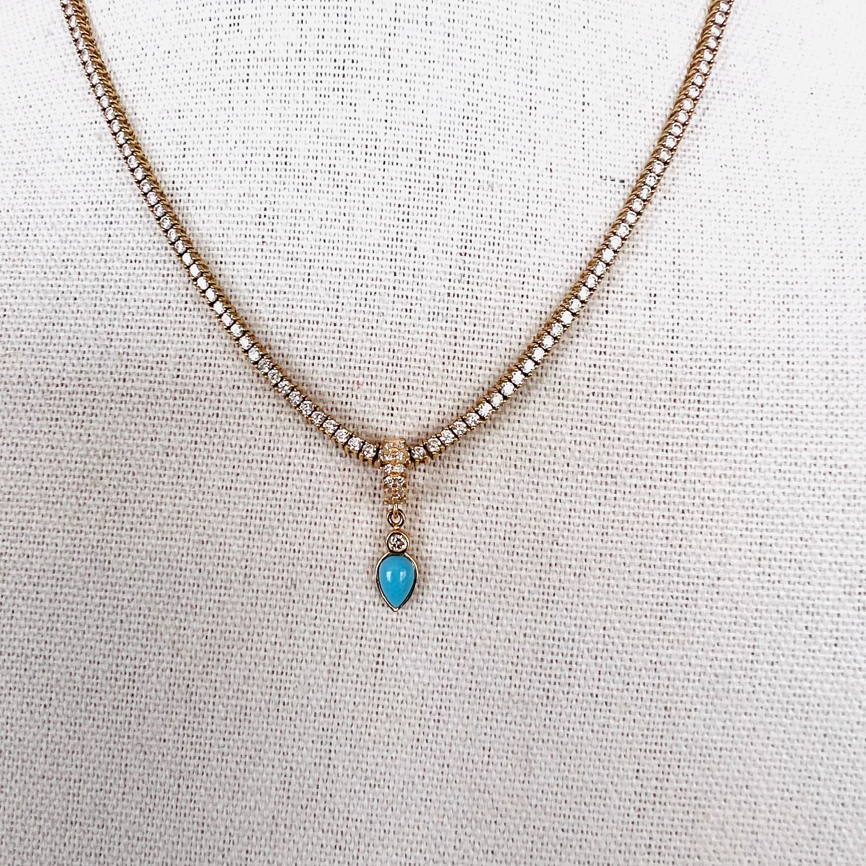 14k diamond rondelle with diamond/turquoise drop