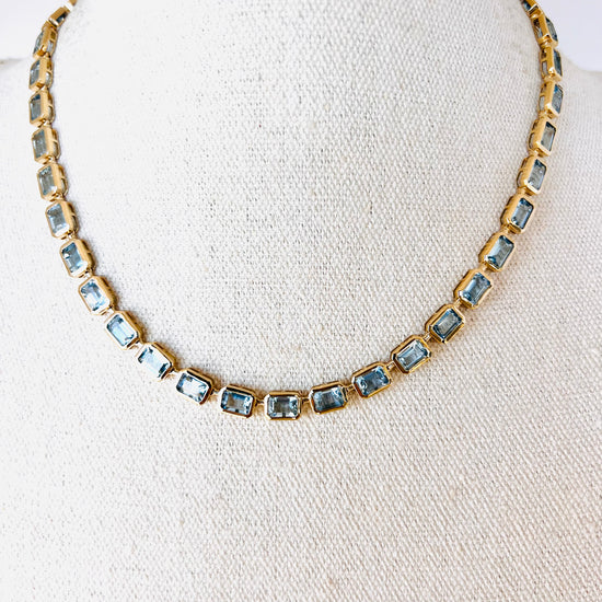 14k Aquamarine Bezel Set Emerald Cut Necklace