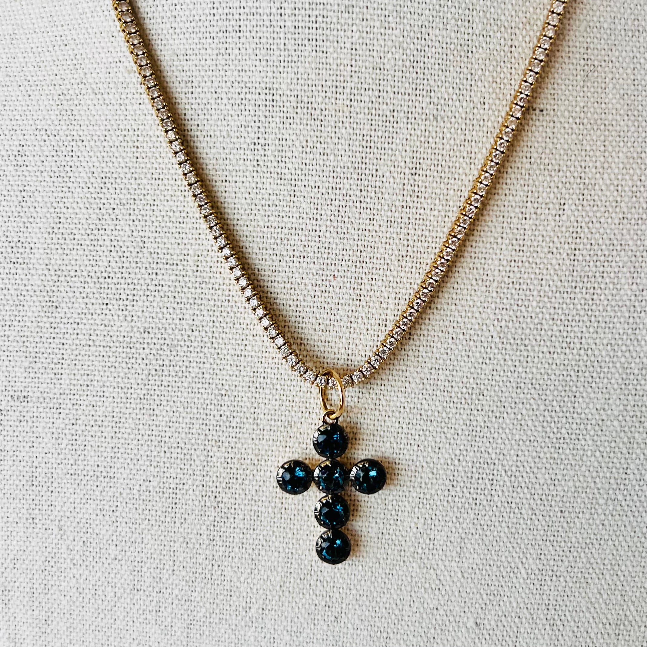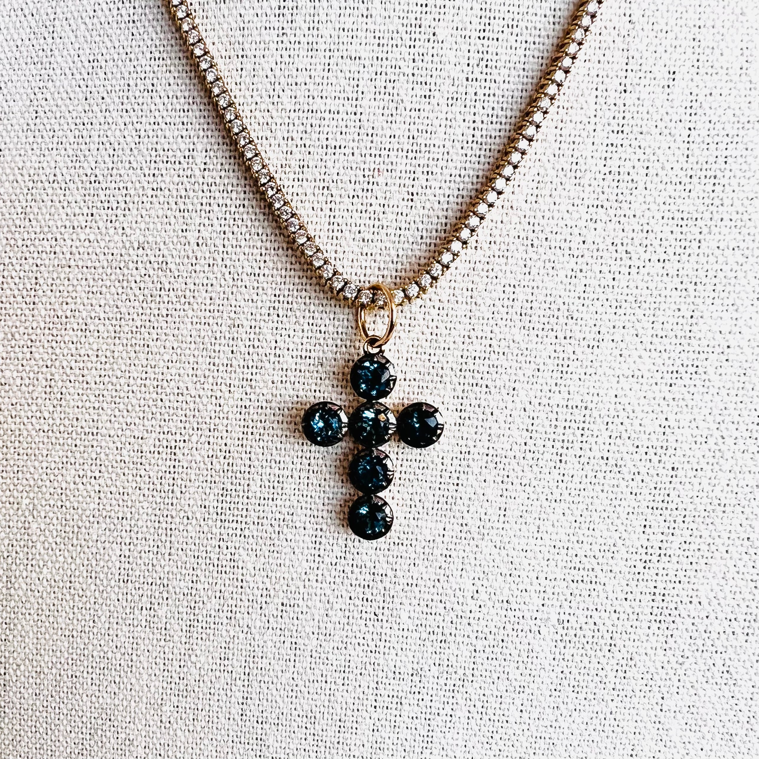 Stunning 14k and London blue topaz cross pendant