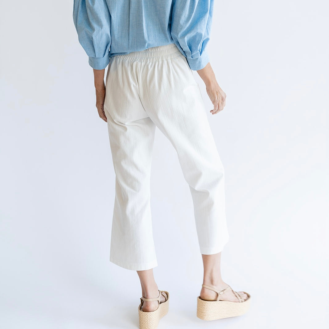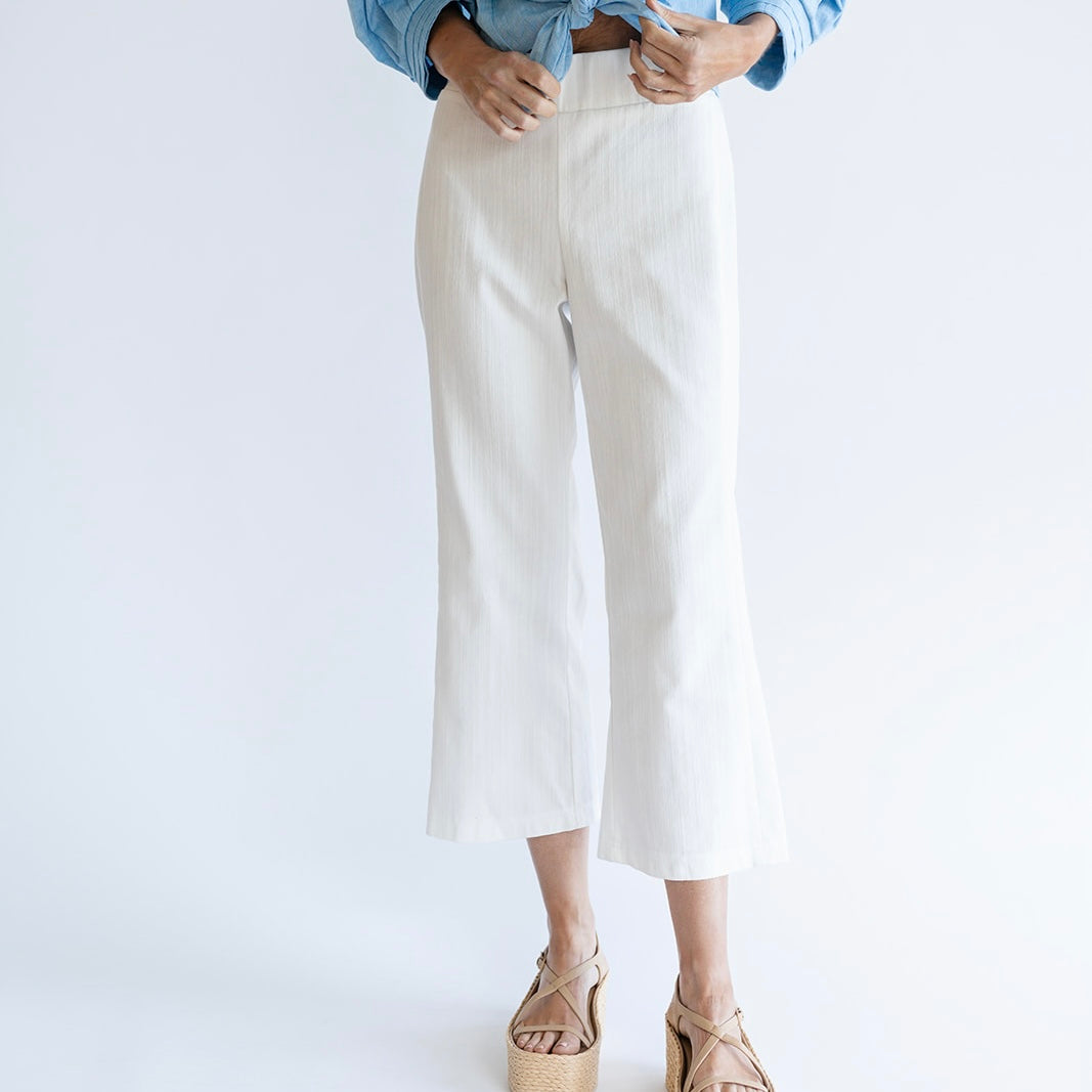 The ZOEY pant lives up to her name, offering a stylish and flattering fit for everyone. Designed for both comfort and style, she is a pull-on pant with no buttons or zippers, ensuring a smooth and comfortable fit. The flat front provides a sleek appearance, while the gently gathered back enhances comfort and complements you silhouette. Slightly cropped with a flared leg, the ZOEY pant creates an elongated and slimming effect, making her a chic addition to any wardrobe. For a set, pair with the white ADELYN or white CANDACE.