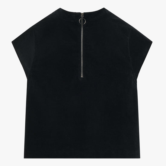 The Audrey Top is a modern wardrobe essential with timeless versatility. Designed with a sleek mock turtleneck and subtle cap sleeves, it offers a clean, minimalist silhouette. The lightly cropped, straight-cut body makes it perfect for pairing with high-waist trousers or skirts. A reversible zipper detail allows the piece to be worn with the closure in front or back—effortlessly shifting from sophisticated to edge-forward styling.
