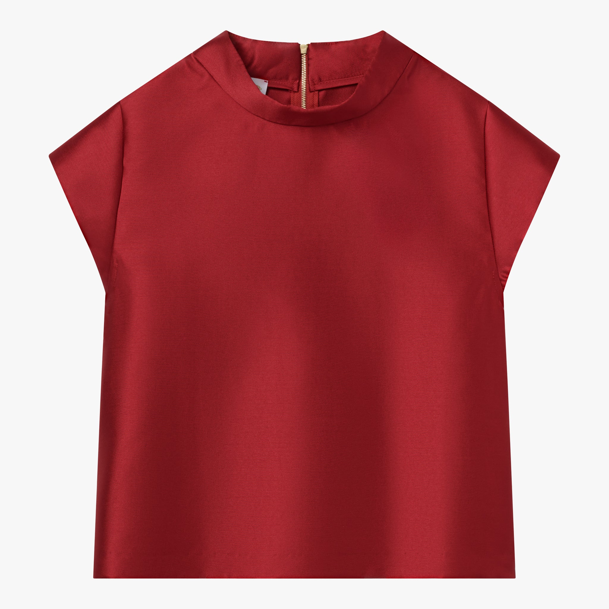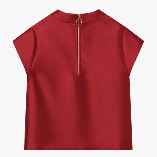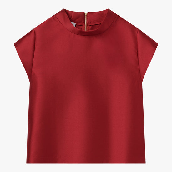 The Audrey Top is a modern wardrobe essential with timeless versatility. Designed with a sleek mock turtleneck and subtle cap sleeves, it offers a clean, minimalist silhouette. The lightly cropped, straight-cut body makes it perfect for pairing with high-waist trousers or skirts. A reversible zipper detail allows the piece to be worn with the closure in front or back—effortlessly shifting from sophisticated to edge-forward styling.
