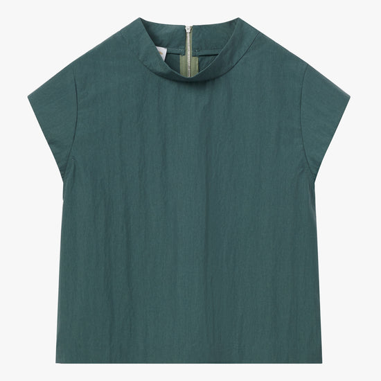 The Audrey Top is a modern wardrobe essential with timeless versatility. Designed with a sleek mock turtleneck and subtle cap sleeves, it offers a clean, minimalist silhouette. The lightly cropped, straight-cut body makes it perfect for pairing with high-waist trousers or skirts. A reversible zipper detail allows the piece to be worn with the closure in front or back—effortlessly shifting from sophisticated to edge-forward styling.