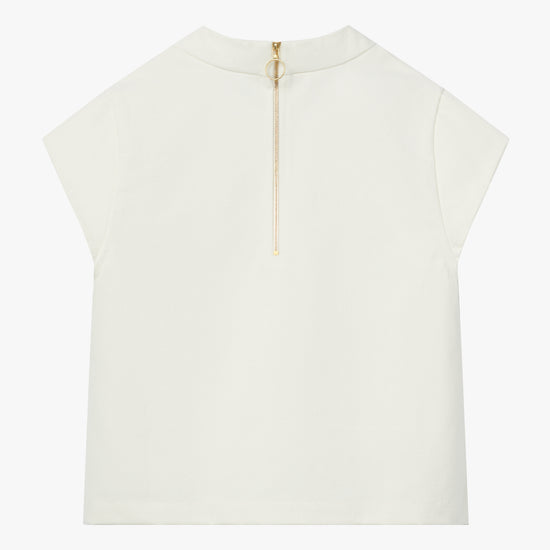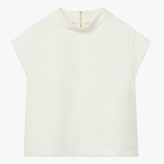 The Audrey Top is a modern wardrobe essential with timeless versatility. Designed with a sleek mock turtleneck and subtle cap sleeves, it offers a clean, minimalist silhouette. The lightly cropped, straight-cut body makes it perfect for pairing with high-waist trousers or skirts. A reversible zipper detail allows the piece to be worn with the closure in front or back—effortlessly shifting from sophisticated to edge-forward styling.