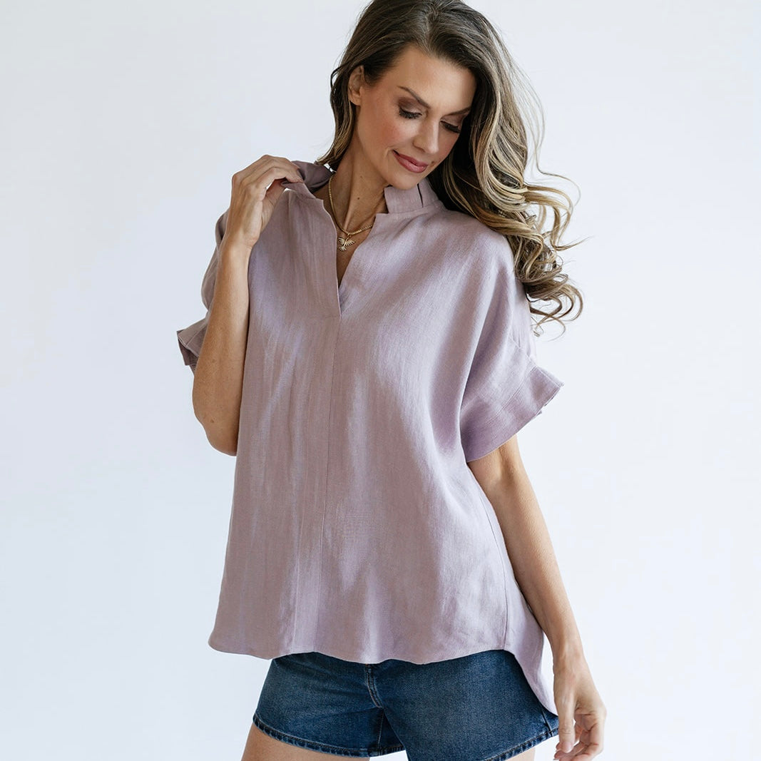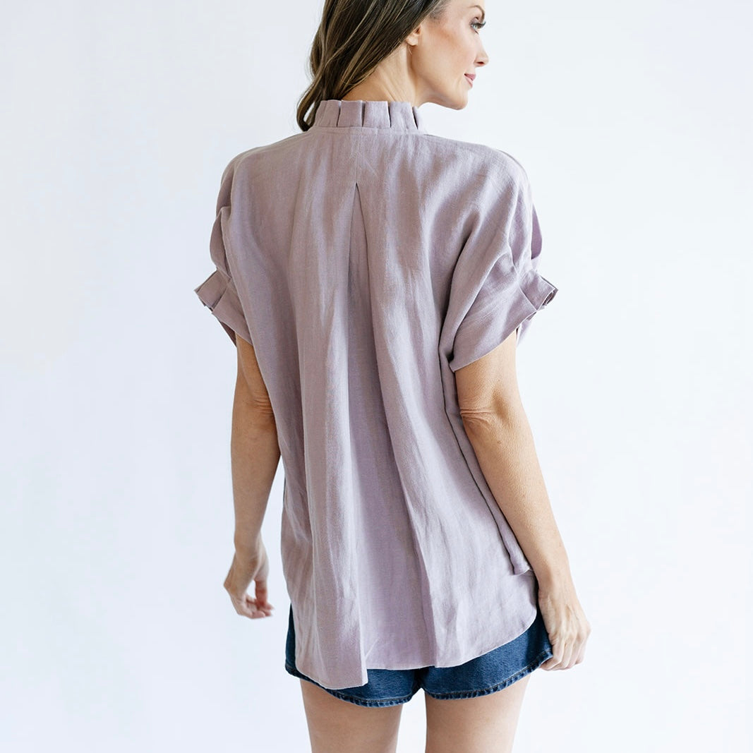 the RENEA is a fan favorite! Her "not too fussy" ruffle details at the neck and cuff offer a subtle feminine detail you will be sure to love. True to the JAG style, the RENEA is slightly oversized for comfort and flattering on all body types!