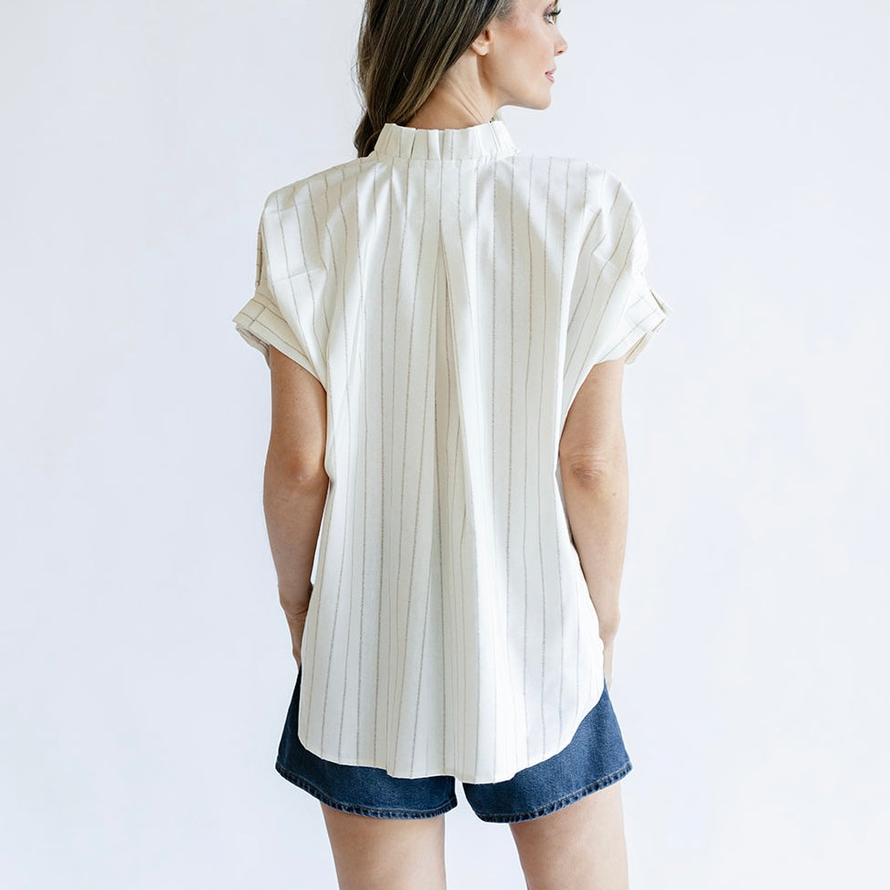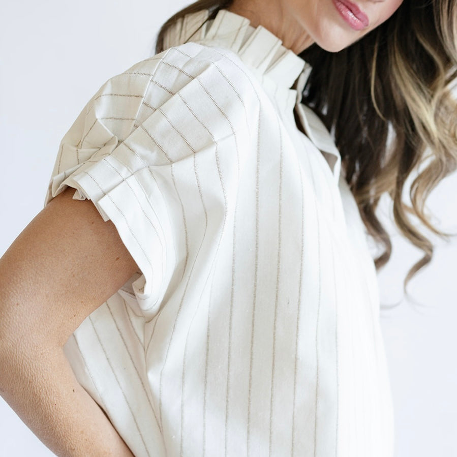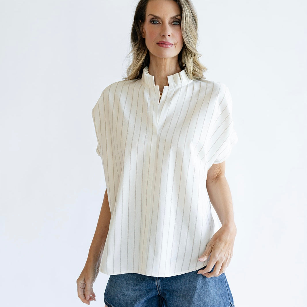 the RENEA is a fan favorite! Her "not too fussy" ruffle details at the neck and cuff offer a subtle feminine detail you will be sure to love. True to the JAG style, the RENEA is slightly oversized for comfort and flattering on all body types!