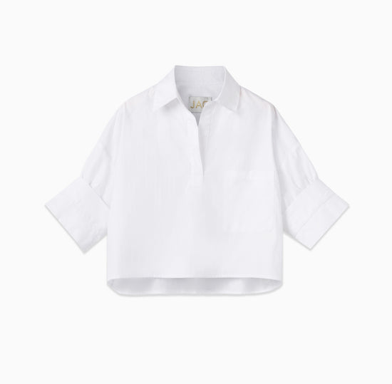 The Rose Top redefines everyday polish with its sculpted ease. Cut in a boxy silhouette with a subtle crop, it balances structure and effortlessness. A sharp collared neckline frames the face with understated sophistication, while sleeves are permanently cuffed for that perfectly undone finish. Equal parts refined and relaxed, it’s the modern staple that moves seamlessly from casual layering to elevated styling. Pair with our PATTY pant for a complete look!
